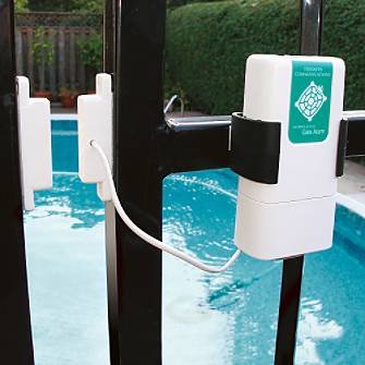Keep your loved ones safe around the water with the Safety Turtle Wireless Alarm Accessories. This pool security system increases safety by monitoring your children and pets around the pool.Base station alarm activates when the Wrist Strap or Pet Collar is immersed in water. Base alarm system sounds up to 150' away. Wrist strap and collar require no installation. Expand wrist strap and pet collar sizes with additional straps and collars. The optional Gate Sensor uses an 11-second bypass so adults can enter the pool area without disarming the system. Installs easily on gates up to 250' away from base station.